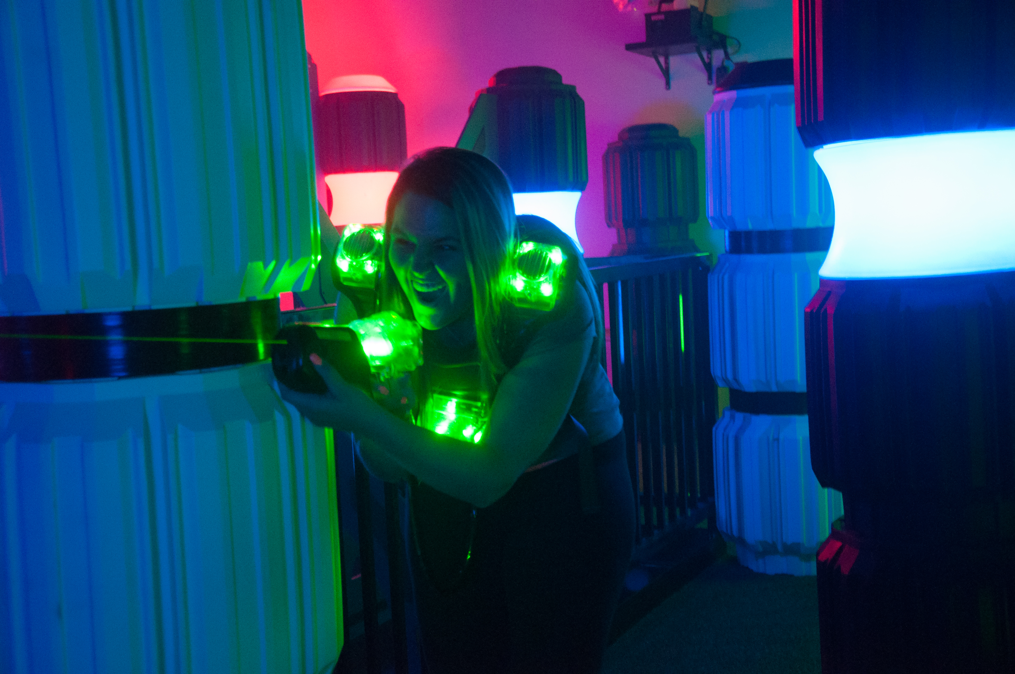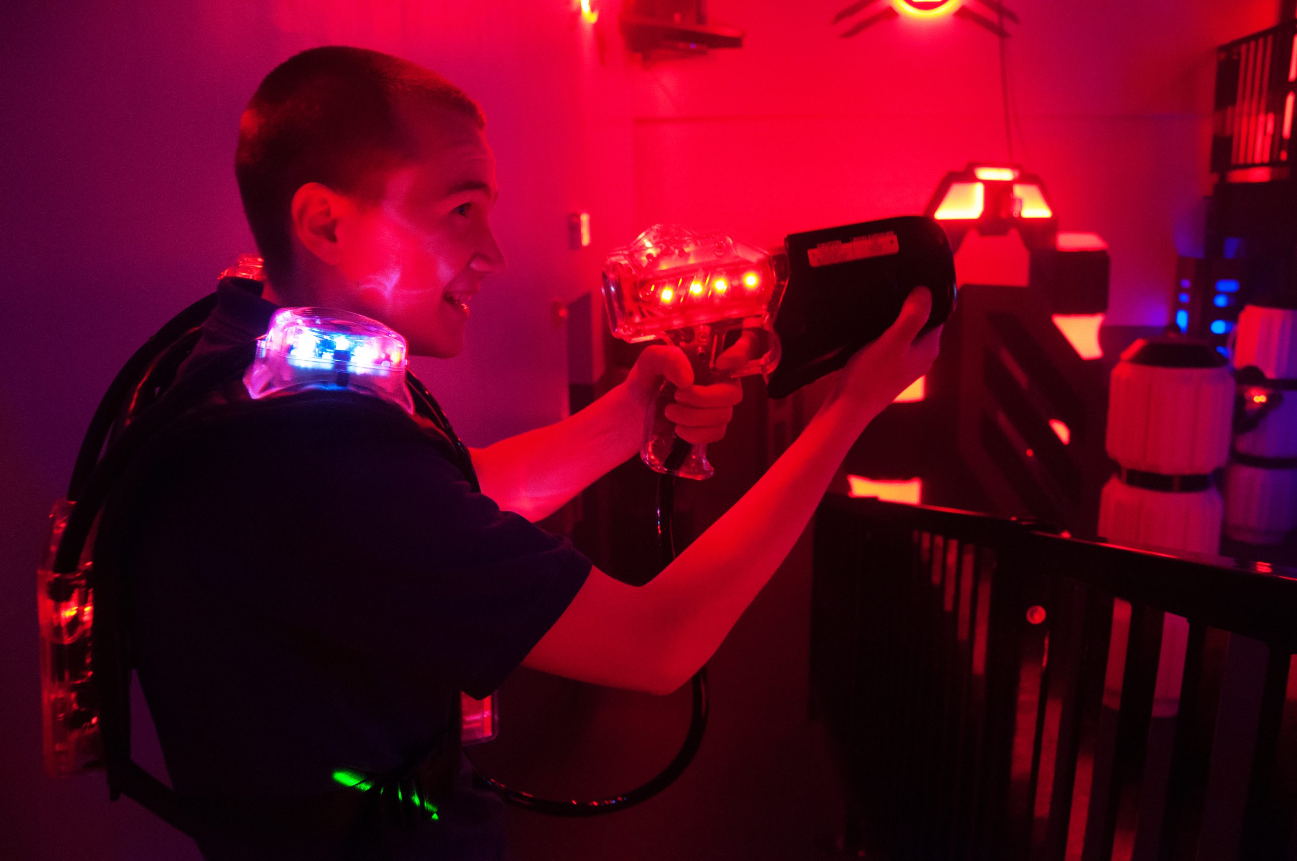 Come play the future of Laser Tag in our amazing all LED arena with bases on both levels.  Combine that with the sophisticated technology of 12 different power chips and you have intense action packed excitement you must experience for yourself.